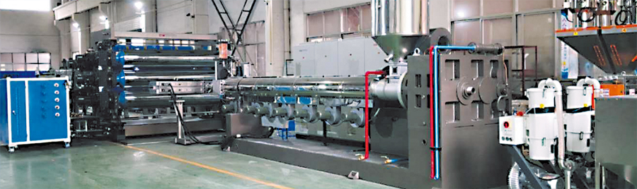 Equipment composition:a)Material automatic mixing system;b)high efficiency extrusion system;c)thickness automatic control system;d)real-time monitoring system.